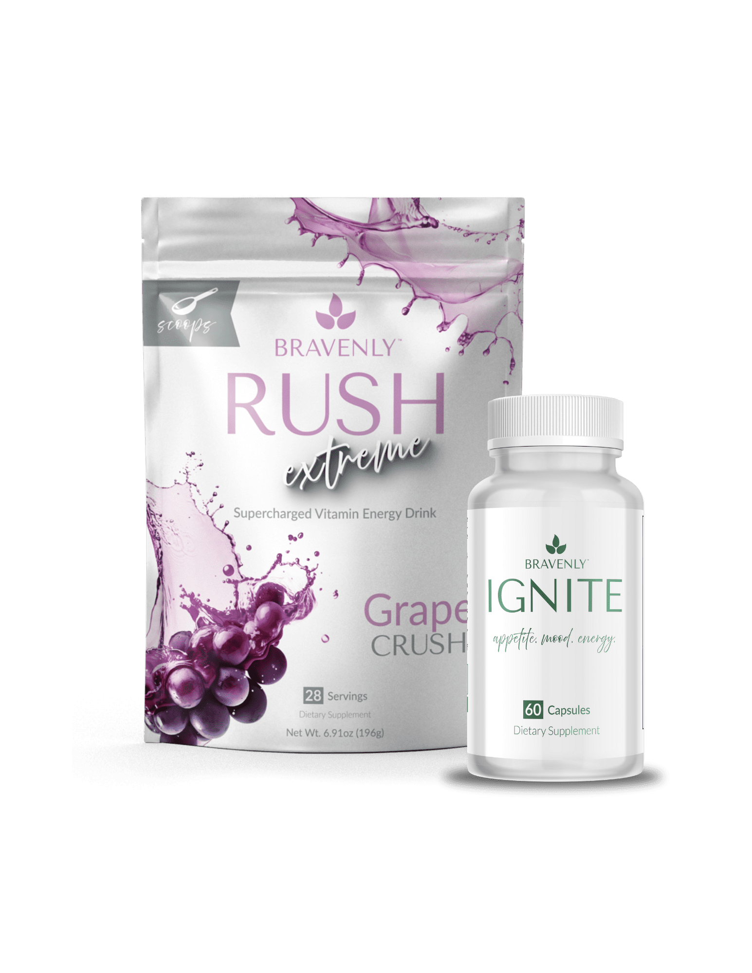 Incluye: IGNITE y su elección de RUSH, RUSH EXTREME, o BREW EXTREME (POLVO A GRANEL)